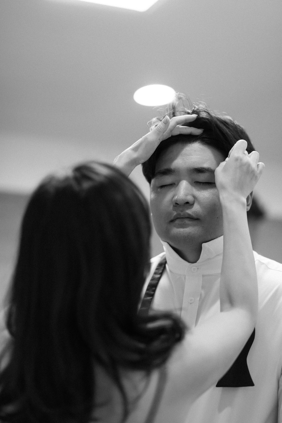 Though both Chris and Yoonjee are Korean, they opted not to include traditional Korean customs in their ceremony. Instead, they leaned into the simplicity and sacredness of a Christ-centered celebration, letting their faith and warmth guide every part of the day. One of the most touching moments happened when Yoonjee’s father gently placed her hand into Chris’s during the ceremony. It wasn’t just a gesture—it was a quiet, powerful symbol of trust and blessing. As a photographer, I’ve seen countless “hand-off” moments, but this one struck me deeply. It wasn’t transactional—it was holy. A father entrusting his most precious gift into the care of another, grounded in scripture and covenant.