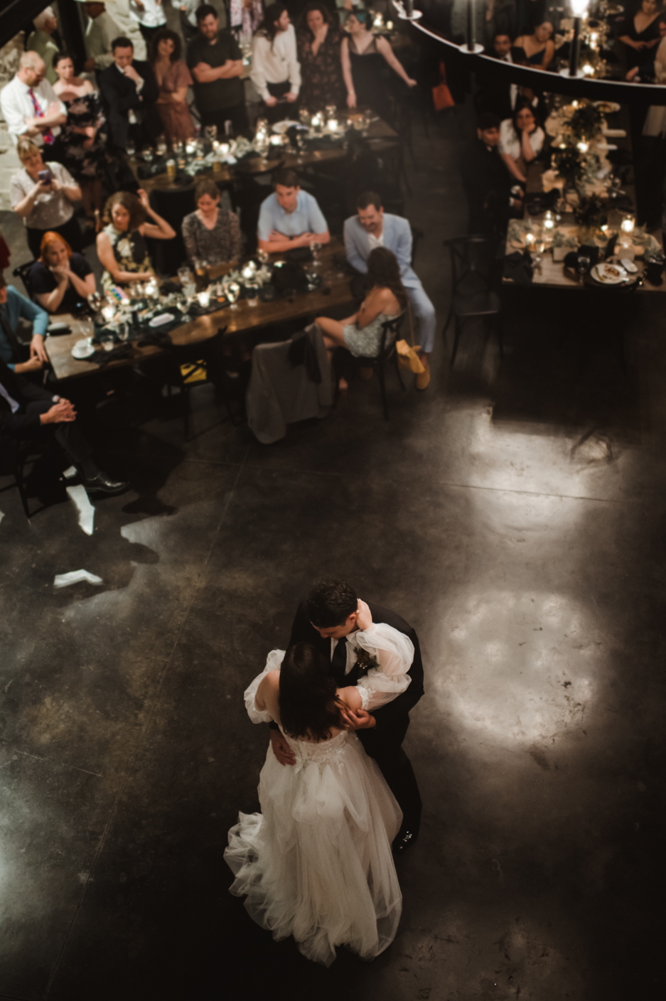 That upper balcony offered an alternative perspective of the first dance and as a documentary style photographer, I love being able to grab shots of guest gathered around the railing to watch the first dance.
