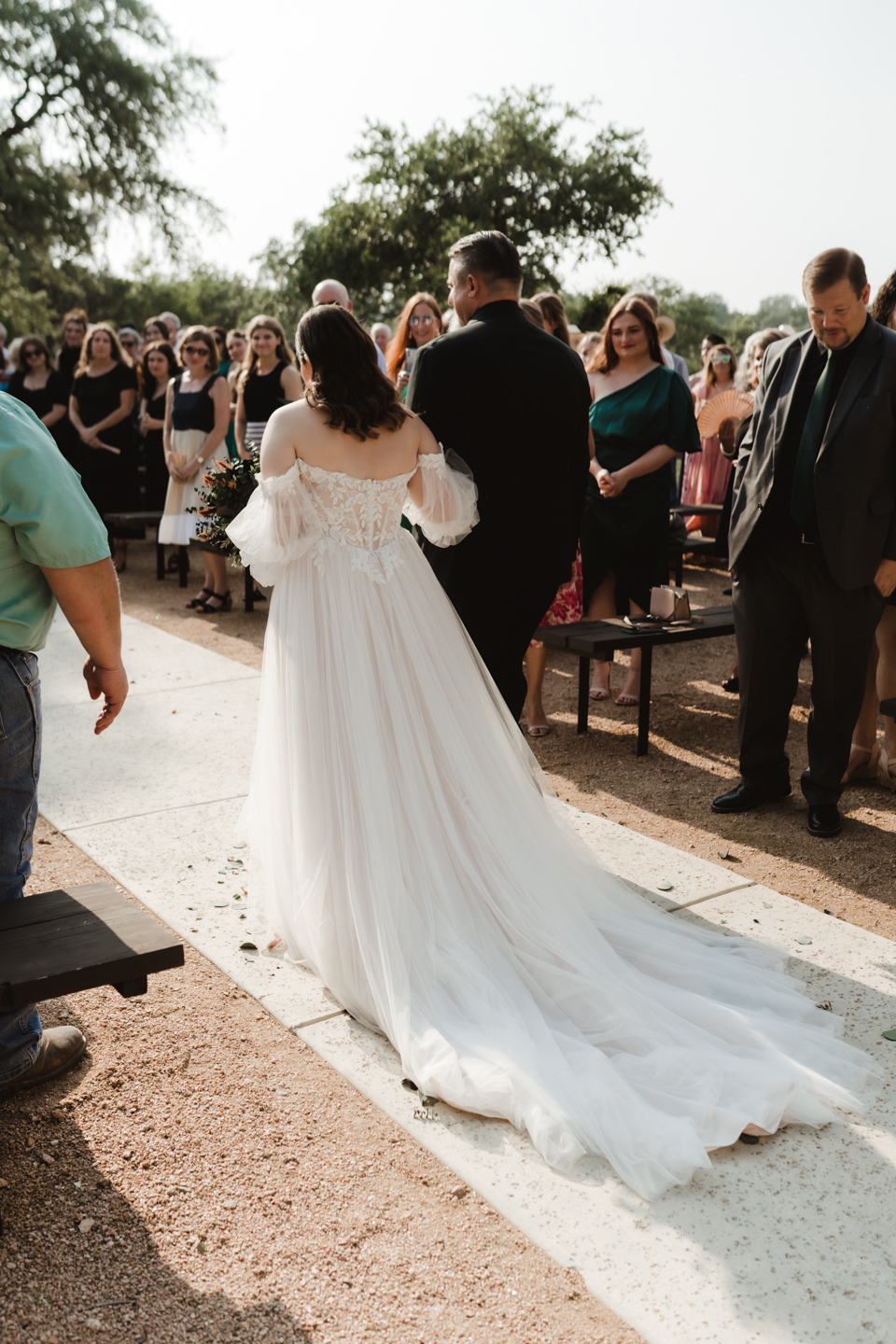 The ceremony took place at the "Living Oak" location. One of Park 31's two outdoor ceremony spots. It's was a (very) warm June weekday with little respite but what a testament to how loved this couple is when I saw that every seat was full.